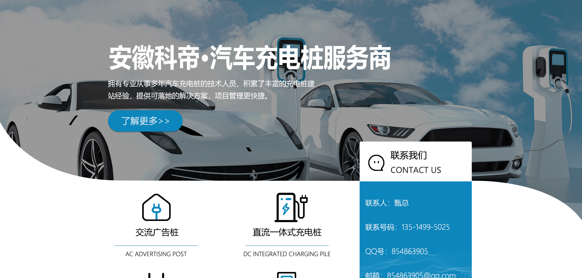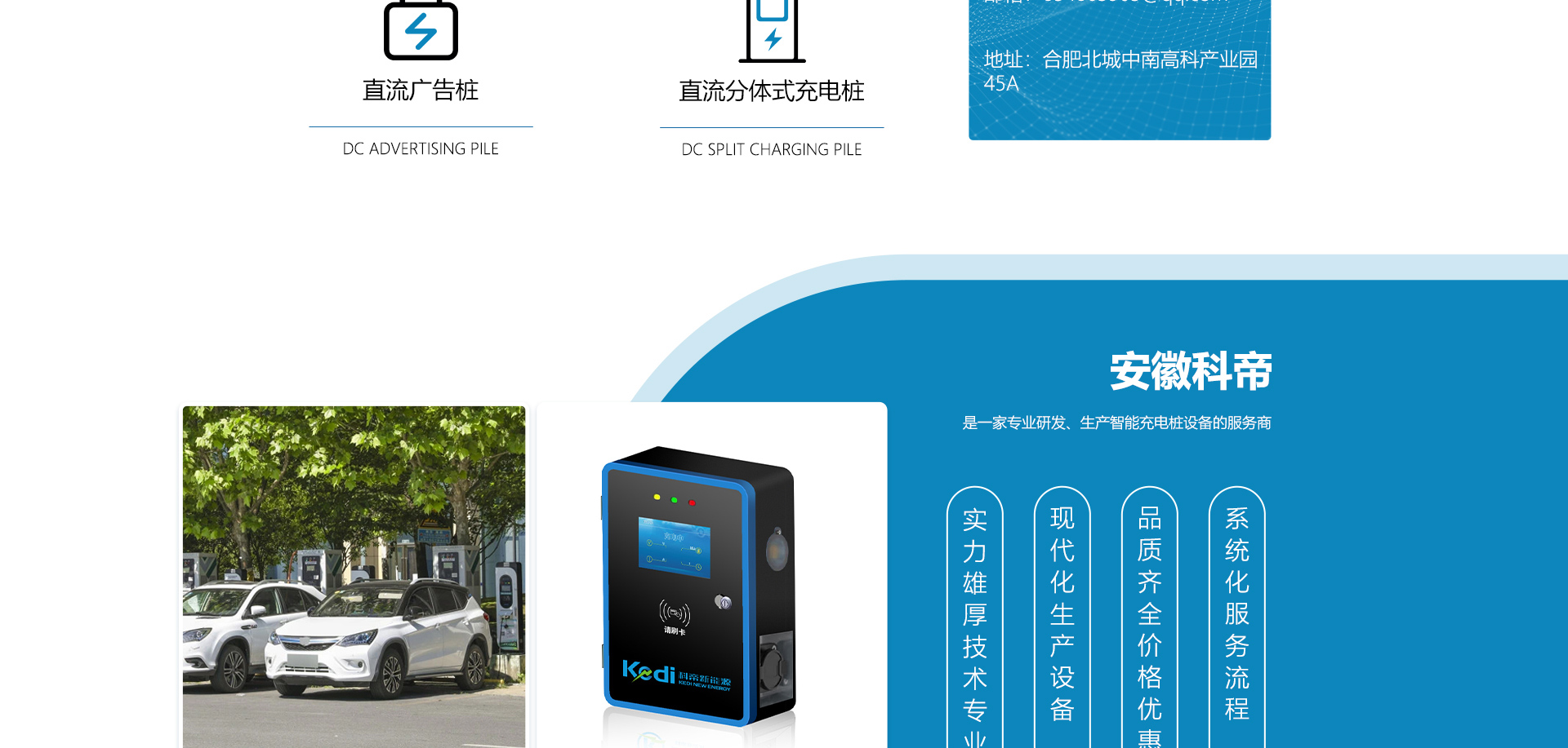 關(guān)于我們安徽科帝新能源科技有限公司坐落于安徽省會(huì)-合肥,是一家研發(fā)、生產(chǎn)智能充電樁設(shè)備,汽車充電站后臺(tái)監(jiān)控管理系統(tǒng)和生產(chǎn)高壓開(kāi)關(guān)設(shè)備的企業(yè).由專門(mén)的研發(fā)團(tuán)隊(duì)、管理團(tuán)隊(duì)按照現(xiàn)代化企業(yè)制度規(guī)范設(shè)立的有限責(zé)任公司。致力于為能源智能、安全的應(yīng)用和節(jié)能減排提供整體的技術(shù)與產(chǎn)品解決方案??频奂邪l(fā)、設(shè)計(jì)、生產(chǎn)、銷售以及服務(wù)于一體,在電動(dòng)汽車充電方案,充電設(shè)施建設(shè)和城市配電方面擁有廣泛的技術(shù)研究及經(jīng)驗(yàn)積累,為客戶提供安全、智能的充電設(shè)備及充電運(yùn)營(yíng)站建設(shè)一體化解決方案。并堅(jiān)持以人為本、質(zhì)量為先、顧客至上、不斷創(chuàng)新”的企業(yè)理念,為能源行業(yè)的發(fā)展、節(jié)能減排做出重大的貢獻(xiàn)。公司擁有豐富的產(chǎn)品種類,目前科帝已研發(fā)生產(chǎn)了三十多種產(chǎn)品,充電設(shè)備有直流一體式充電樁、直流分體式充電樁、直流廣告樁、交流廣告樁、廣告一體樁、壁掛交直流樁;等多種充電設(shè)備;每一款產(chǎn)品都是精心打造,力求為客戶提供優(yōu)越的用戶體驗(yàn)。展望未來(lái)科帝將通過(guò)持續(xù)的自...